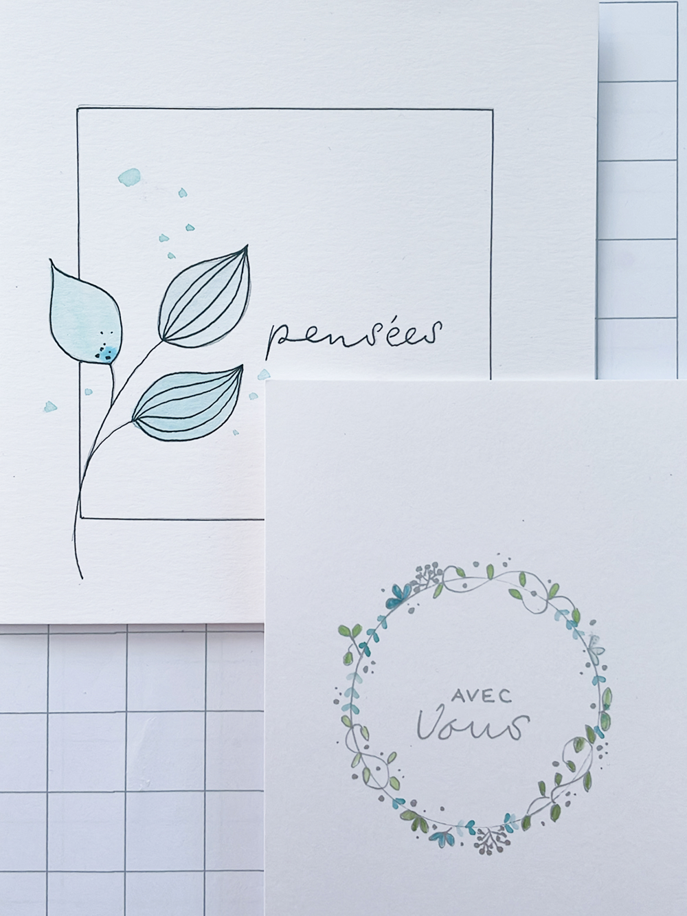 Deuxième partie – place à la créativité! On explore ensemble différents feutres, papiers (que je mets à votre disposition), textures et techniques pour que chacun(e) puisse créer ses propres cartes personnalisées. C’est le moment de lâcher prise et de se faire plaisir avec les couleurs et les mots.